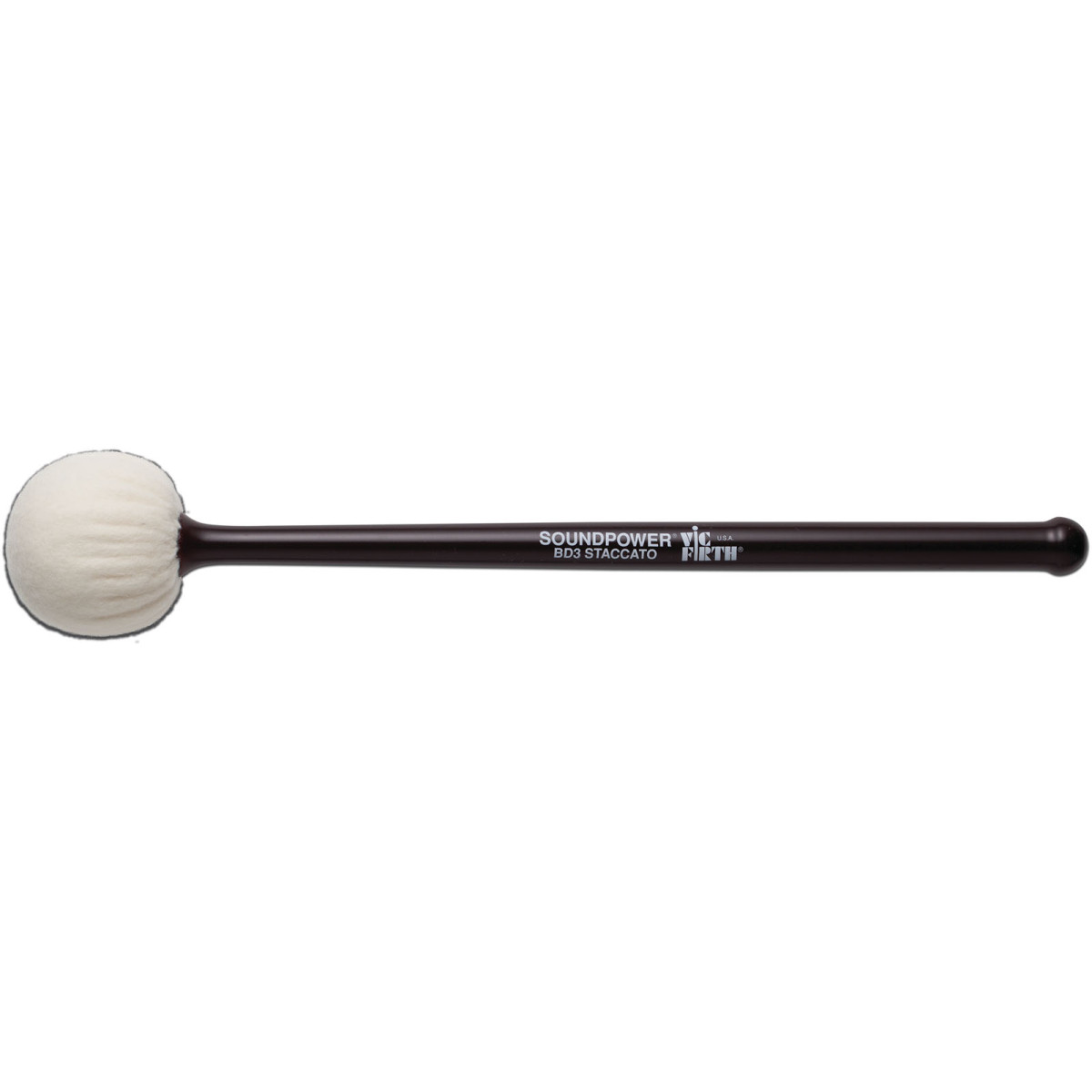 Une mailloche dure, pour plus de clarté rythmique.